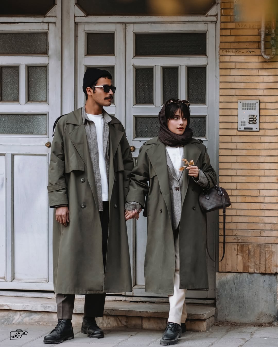 ست لباس کاپلی بارونی بلند مدل اورسایز کلاسیک رنگ سبز زیتونی جنس سانتانا